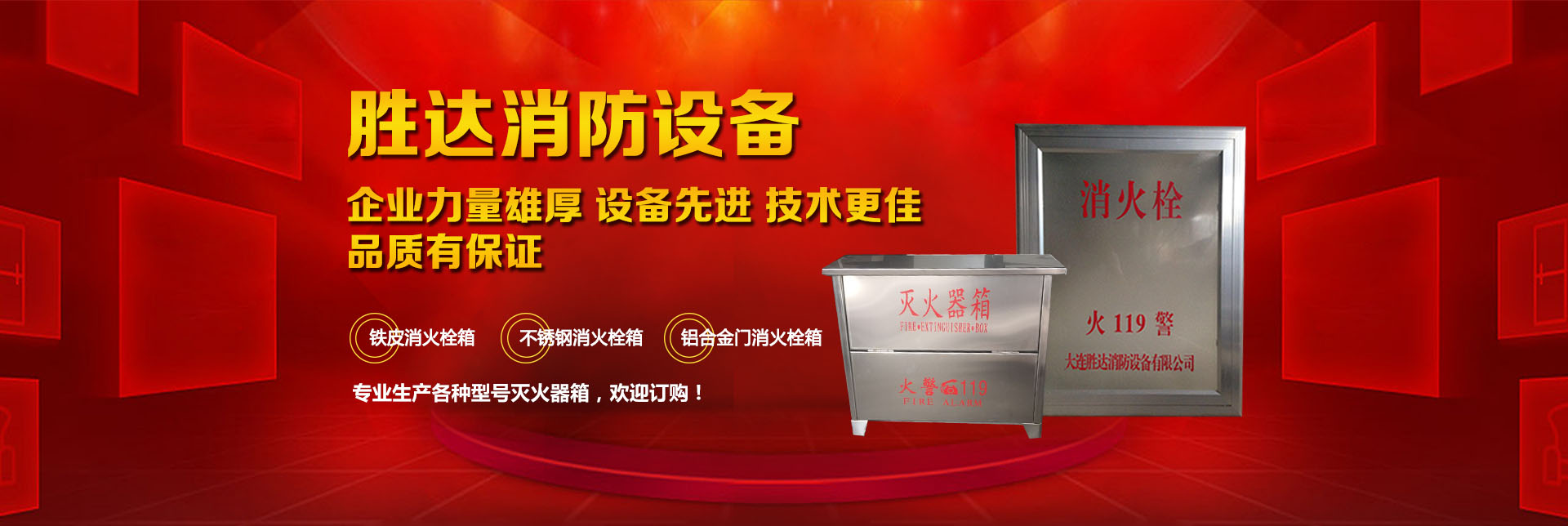 大連勝達消防設備有限公司本公司企業力量雄厚、設備先進,生產的所有消防產品均符合國家GB14561—J標準,品質有保證。我公司地理位置優越,位于大連市甘井子區西北路847號交通便捷,公司專業生產各種型號滅火器箱、消火栓箱、鐵皮消火栓箱、不銹鋼消火栓箱、鋁合金門消火栓箱。消火栓箱系列產品,全部按照國家標準和行業標準進行生產,并通過國家合格鑒定,得到了國家固定滅火系統和耐火構件質量監督檢驗中心的產品認證和產品形式報告書。我們的消火栓箱系列產品具有外形美觀、結構先進、開啟靈活、使用可靠、消火應急燈具標志清晰、光色好、功耗低、使用壽命長、安裝使用簡便,可廣泛應用于高層建筑和工業等一些公關場所使用。